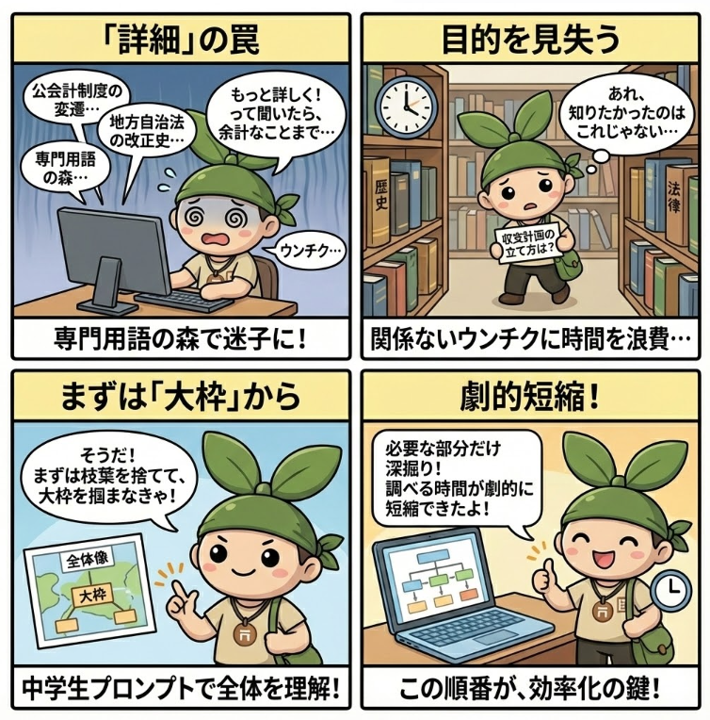 だからこそ、まずは枝葉を捨てて**「大枠」を掴む**ことが重要。