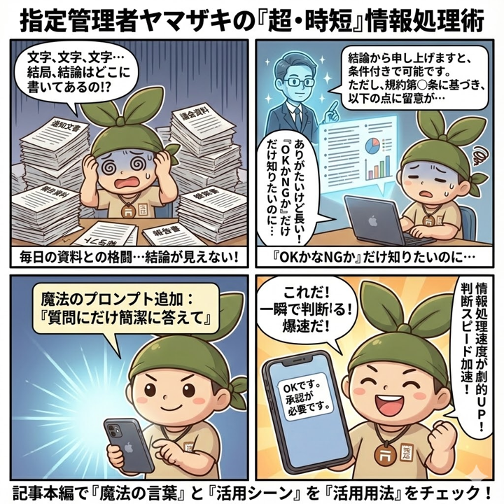 【編集長ヤマザキが多用したプロンプト5選 - その④】資料に埋もれる日々から解放!「質問にだけ簡潔に答えて」