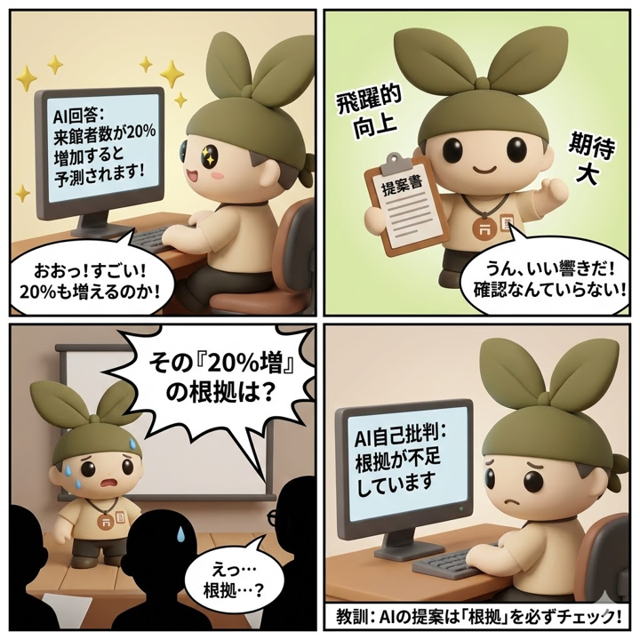 意識だけで防ぐのは難しいです。だから、AI自身にチェックさせる習慣をつけましょう。