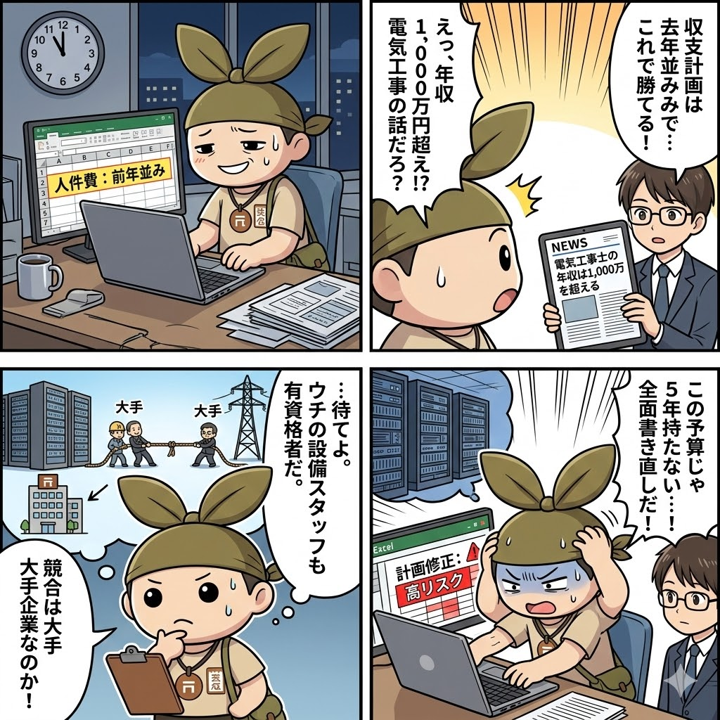 【採用担当者必読】電気工事士が年収1,000万円時代へ——指定管理の5か年収支、このままで大丈夫ですか?