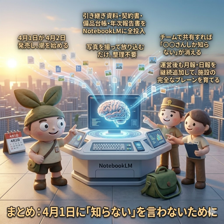 まもなく4月1日!新施設立ち上げ担当者必読! NotebookLMで「施設の脳みそ」を作れ——引き継ぎ地獄を終わらせる最強ブレーンの作り方